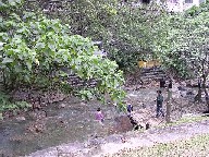 そして、親水公園。地獄谷から流れた川が足湯になっています。 |