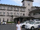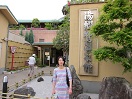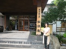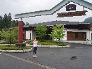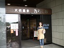 三朝温泉「三朝ロイヤルホテル」は日帰り入浴1000円(とりパスを利用したので半額でした)フロントで支払い、エレベーターか階段で1階に降ります。脱衣所は貴重品ロッカー完備で、脱衣棚はかごです。浴場は広く、大きな柱があります。タイル張りの浴槽は縦長で、浴槽内に段差がつけられていました。岩造りの露天風呂もあります。温泉は独自源泉で「大瀬温泉」、三朝温泉街の湯とは印象が違います。成分的には単純温泉の分類となっていました。 (東伯郡三朝町大瀬1210 Tel.0858-43-1231) |