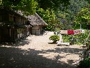 深谷峡温泉「清流の郷」。ここはログハウスやその他の施設のセンターハウスになっています。資料では日帰り入浴は10:00からとなっていたのですが、入口の表示は11:00からに書き換えられていました。たずねてみると清掃が終了次第入浴できるということでしばし待つことにしました。料金500円をフロントで払うとロッカーキーを渡されます。男女別内湯のみであまり広くない石造りの浴槽。壁は板張りで、大きな窓の外は木々を望めます。つるすべ系の湯。湯口が変色していて成分は濃いようです。循環はしているもののまだお湯が新しく印象はよかったです。(岩国市錦町宇佐郷1075 Tel.0827-74-5100) |