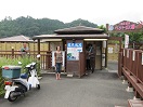 田万川温泉「憩いの湯」は、近くにある西堂寺六角堂をイメージした六角形の温泉棟を中心とした施設。地元の特産品の売店や食堂、集会場などもあります。お湯はあまり特徴ありませんが、天井が高く明るい内湯と東屋付きで庭が広くとられた開放的な岩造りの露天風呂があります。ロッカーも無料で、料金400円。