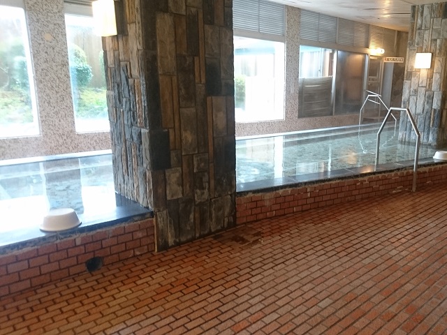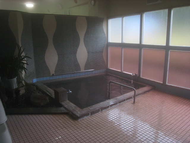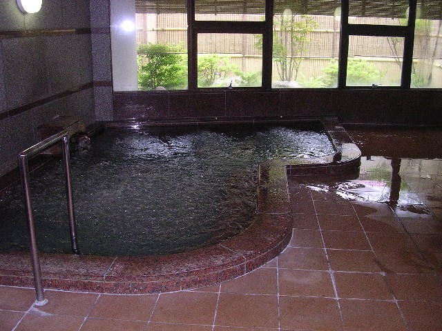 鳥取温泉「ホテルモナーク鳥取」は鳥取市街地に建つホテルですが、温泉のみの利用も可能です。フロントで料金を支払い、タオル、バスタオル、歯ブラシセット、クシ(男性はカミソリ)を受け取ります。脱衣所は広く、洗い場もゆとりがあります。浴槽はL字型で窓と壁に沿って作られています。お湯は透明ですが、浴槽の淵は赤茶色に染まっています。サウナ、水風呂を併設。日帰り入浴1,000円。
