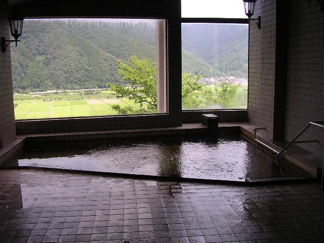 雙津峡温泉「憩の家」坂を登ったところに建つ日帰り入浴施設。下足箱は100円のリターン式だったのですが脱衣所はノーリターンで100円を献上(笑)。料金500円は受付で支払います。売店、食堂、休憩コーナーもあり、個室も借りることができるようです。お風呂は男女別で、女性は奥。脱衣所にも数人の人がいましたが、浴室からも賑やかな声が聞こえてきます。入ると足元に湯が溢れていました。石造りの長方形の浴槽には適温のつるすべの湯が注がれ、窓の外には緑の山が広がり、いい感じ。加温ですが掛け流しにしているようで、なかなかお勧めの施設。
