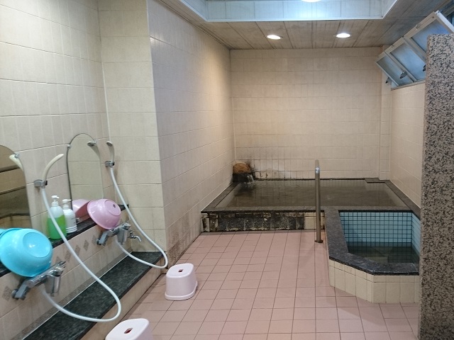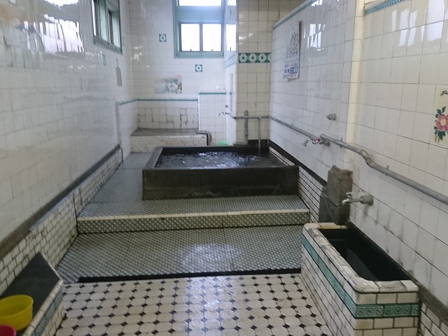 「日の出湯」は鉱泉銭湯。昔ながらの銭湯で、地元の人が多く通ってきます。タイルが少し茶色に変色していて、そこが鉱泉なのかな?と思わせるくらいで、特徴はありません。カランも鉱泉の加熱とのこと。料金350円。