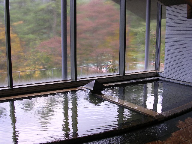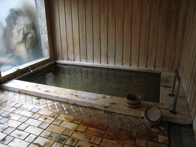 岩井温泉「浪漫伝承の宿明石屋」は日帰り入浴800円。不可の日もあるので事前確認をお勧めします。女性浴場は檜や栗の木を使った落ち着いた雰囲気。浴槽は縦長で一部浅くなっているのでのんびり浸かれます。羊の湯口の析出物が見事です。ここへ向かう途中の廊下から外にでると露天風呂があります。佐治石を使った岩造り、鳥取県最古の露天風呂だそうです。混浴ですが宿泊すると女性専用時間があります。(岩美郡岩美町岩井536 Tel.0857-72-1515) |
