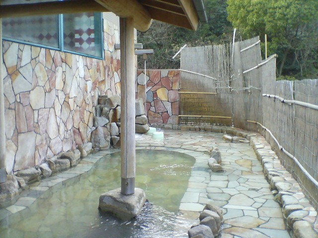竜崎温泉「潮風の湯」は周防大島にあるセピア色の塩化物泉。石造りの大浴槽は加温で温度は二段階になっているようでした。小さいけれど源泉浴槽があります。多少囲われていますが、眺めのいい露天風呂は熱めでした。サウナと水風呂も併設され、空いていればお勧めの施設。訪れた日女湯は激混みでしたが(涙)。料金700円、券売機制。受付で貴重品ロッカーの鍵を受け取り、貴重品を預けます。脱衣所にはロッカーがなく、館内施設はその鍵で利用できます。(大島郡周防大島町東安下庄685-2 Tel.0820-77-1234) |