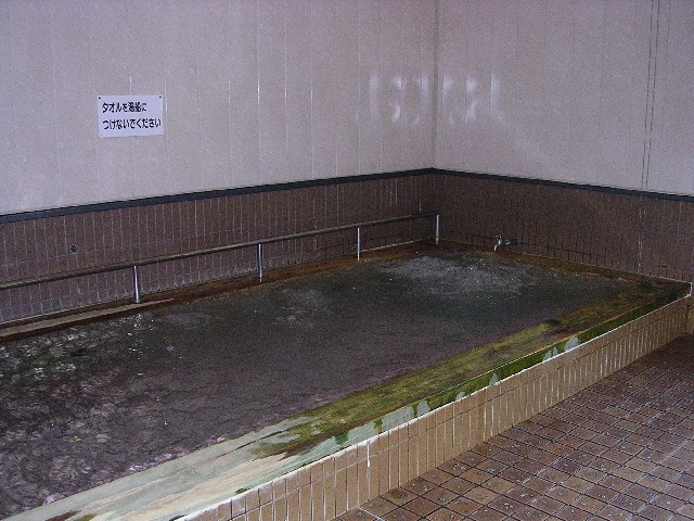 「大栄温泉共同浴場」。ごくわずかににごっているように感じました。シンプルな浴槽に張られた湯は成分も豊富で、部屋付の湯治プランもあります。地元の方が多く利用し、訪れた日私以外は全員知り合い状態でした(笑)。料金450円。よく温まります。小さな休憩室と自動販売機があります。*閉館*