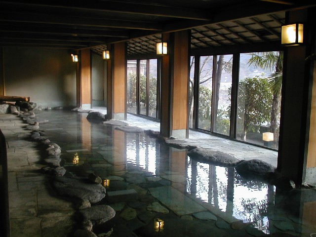有馬温泉「陶泉御所坊」です。創業800年の老舗旅館ですが、全ての人に受け入れられる宿は目指していないというのが経営方針だそうで、私にはうまく表現できないのですが、わかるような気がする宿でした。建物のベースは古いのですがあまり感じることなく、とても落ち着きます。お風呂は一箇所で男女交替もありませんが、脱衣所、洗い場を経て、スロープ状の通路から湯に入りコの字型に進むようになっている先は半露天で、さらに並んで男湯があるという色んな楽しみ方のできる造りになっています。湯は自噴する金泉。朝9時からの清掃時間以外はいつでも入ることができます。段差はありませんが、半露天になるところが深くなっているなど高低差をつけてあるので足元に注意が必要です。朝夕とも部屋食で、夕食は明石産の魚介類を中心とした御膳料理。食後のひとときにサロンを開放しています。