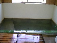 浴槽です。右側に見えるホースからお湯が出ます。この日は適温でした。 |