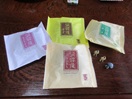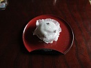 - 折立温泉「吾妻屋」の温泉饅頭、こしあん。あっさり系。以前は自在館のお茶請けだったのですが、最近は「甘泉堂」のなごり雪。和三盆糖、白双糖と卵をつかった和菓子です。
