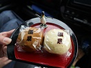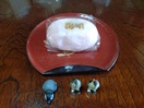 「情けの塩最中」も有名。カステラ饅頭「兼続出陣かぶと」はこしあんで、ちゃんと裏表模様が違う上に、細かいところまで表現されていました。
