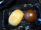 - 赤倉温泉「萬寿堂」の温泉饅頭、こしあん。皮に白と黒があり、砂糖の違いによるものです。
