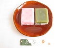 - 「おだまき」は、表面に均等なスジが入った、三角形の和菓子。もちもちの生地は米粉で、定番は粒あんだそうです。この辺りでは定番のお菓子です。道の駅のと千里浜で購入していただきました。抹茶つぶあんと黒糖きな粉の2個セットです。