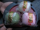 - 中能登町「萬寿堂」のえくぼ大福。三種類あると、白とピンクは同じだろうと思っても買ってしまう私(笑)。緑はもちろん草餅でどれもかぐら餅を使用しているとのこと。中身はどれも大納言の粒あんです。パッケージにあるように「ほほえみをよぶ」おいしさ。