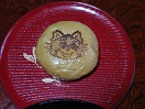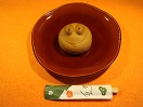 - 「山中石川屋」の娘娘(にゃあにゃあ)万頭。楕円形、黒糖と味噌の風味の薄皮のお饅頭はこしあんたっぷり。