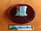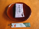 - 伊勢市榊原温泉「まろきの宿榊原館」のお茶請けは「まろき」。抹茶気味しぐれです。