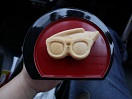 - 鯖江市「福音堂」のめがね最中。ブルーベリー味の最中とは珍しいです。粒あんの中に確かにブルーベリーを感じます。