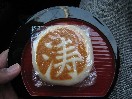 一日30個限定、「丸福」の山代温泉まんじゅう。温泉マークの焼き印が押された皮には山代温泉の源泉が使われているそうです。皮がとてもおいしい!中は白あんであっさりした甘さです。