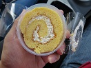 - 紀宝町「十紀和屋横谷」のマイヤーレモンロールはマイヤーレモンの皮と果肉を使った少し酸味のあるロールケーキ。道の駅「うみがめ公園」で1カット購入しました。