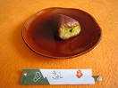- 指宿市「鳥越屋」の代表菓「いすぶき路」はサツマイモあんにニッキの風味のお饅頭、形はサツマイモ型とのこと。甘すぎずおいしいです。吟松のお茶請けでした。