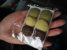 - 九州うまかもん市で購入した「味のくらや」の「からいも団子」を食べました。さつまいもを使ったお団子で、黄粉をまぶしてあります。あん入りとあん無しの両方食べましたが、甘さ控えめでおいしかったです。正確にはお団子だけのものが「ねりくり」、粒あん入りのものが「からいも団子」だそうです。