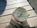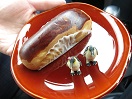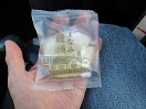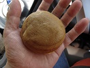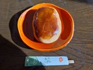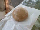 - 由布市湯布院町「今泉堂」の黒糖揚げまんじゅう。米油で揚げているそうで、カリッとしていて黒糖風味、粒あんのおいしいお饅頭でした。相方さんの同僚さんからお土産にいただきました。