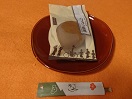 - 山鹿市には灯籠せんべいもあります。同田貫本舗の千人灯籠せんべいを平山温泉「かどや」でお茶請けにいただきました。