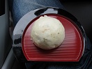 - 熊本市「蜂楽饅頭」。黒と白がありますが、白が気に入りました。あんこたっぷり、熱々です。