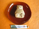 - 波佐見町はさみ温泉「湯治楼」で購入できるのははさみ饅頭。「辻屋製菓」製。白あんで皮は黒糖風味のお饅頭です。