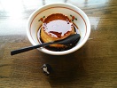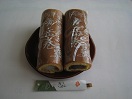 「あくまき」は鹿児島の郷土菓子ですが、このお店には森永さんというあくまき職人さんがいらっしゃって他とは違うとのこと。孟宗竹の皮で糯米を包み木灰汁で長時間煮る手間のかかったお菓子は端午の節句には欠かせないそうです。こちらもおすすめの黒糖を使ったきな粉でいただきました。柔らかいので切り分けるのが難しかったです。お餅とは違う独特な風味と色、一度は食べてみてください。