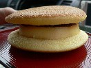 - 薩摩蒸気屋のかすたどん。カスタードクリームをスポンジ生地で包んだお菓子。