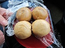 - 道の駅耶馬トピアで購入できる「そばん子まんじゅう」。そば粉の皮の香りがよくあんとマッチしておいしい。パックでも売っていますが、カウンターですぐ食べると言うと、あたたかいものをいただくことができました。