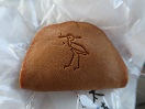 沖縄黒糖刻太鼓は鷺の焼印の入った皮に粒あん、こちらの皮ももっちりしていました。長細い小判形に焼いた皮にあんを挟んで二つ折りにした形です。季節限定品は愛媛の栗とバター入りでした。道後のお月さんはミルク饅頭です。