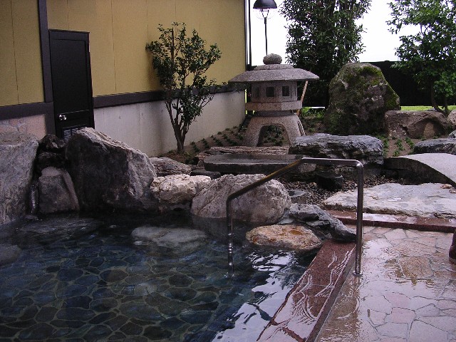 - 「足湯」:「滝の湯」の手前に2002年にできた無料の施設。噴水(温泉ではありません)と緑と空を見上げながら楽しめます。四角形が二つ、噴水に沿って大きめのものが一つあります。屋根つきです。
