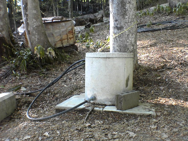 「おおしまやすらぎの森」のイベント足湯で利用される鉱泉。地元の森林組合の所有です。薪で沸かした足湯は寸志で利用できます(常設ではありません)。