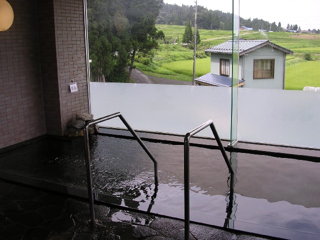 宿泊施設ですが、日帰り入浴可能で450円。私は4時間(11:00〜15:00)個室を借りましたが、どの部屋も日本海を望む造りでゆったりできます。こちらのお風呂は4階にある展望風呂、ガラス張りで眺めはもちろん日本海。薄い褐色のしょっぱい源泉はなかなか汗の引かない実力のある湯です。