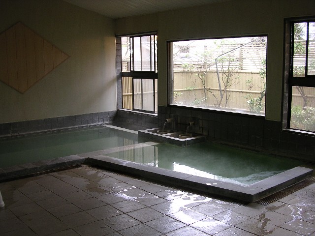 「有馬療養温泉旅館」は川崎市にある効能豊かな湯。鉄分を含む褐色の湯は炭酸を含み湧出時は透明でもすぐ酸化し、金色の膜がはるとか。体感するには寒い日の朝一番がいいそうです。浴槽は茶色に変色し、浸かると胸から下は見えません。浴場、脱衣所とも広くはありませんが、ロッカーは鍵付き。玄関脇のフロントで料金を払うとタオル、バスタオルと飲泉用のコップが渡され、コップの底には帰りの時間が書いてあります(2時間1,700円、3時間2,500円、一日3,500円、他夜間料金あり)。源泉を飲んでから湯に浸かるとさらに療養効果があがるそうで、その源泉は1階の休憩室と浴場で飲むことができ、2階にも広い休憩室があります。(川崎市宮前区東有馬3−5−31 Tel.044-877-5643) |
