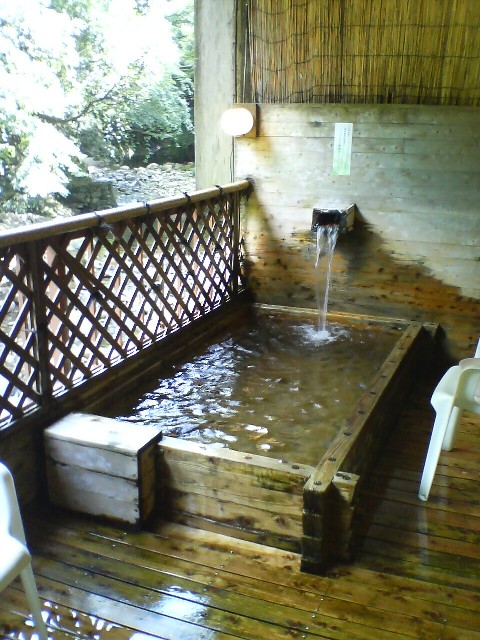 | 鈍川温泉「鈍川温泉ホテル」は温泉街の中ほどにあほどにある宿。浴場は二箇所で、大浴場と岩風呂がありますが、訪れた時間は岩風呂は利用できませんでした。大浴場は玉川を望み、檜造りの露天風呂を併設しています。加温ですが露天風呂は掛け流しでした。また水風呂も源泉です、ポリバスですが(笑)。お湯はつるつる系、「美人温泉」の別名があります。日帰り入浴400円。 (今治市玉川町鈍川甲276 Tel.0898-55-2280) |