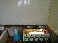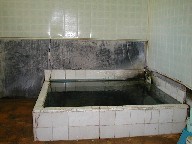 女湯の浴槽です。やや深めで、立っても腰くらいまでお湯に浸かることができます。茶色い湯花が少し浮いたいいお湯でした。適温に保たれています。全体に古いのですが、浴室の天井が高く落ち着きます。