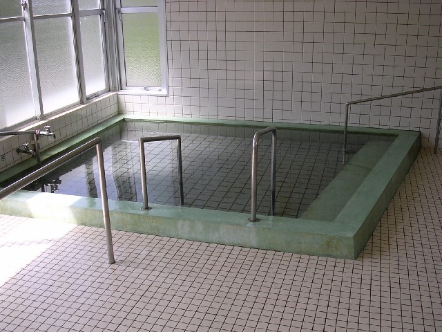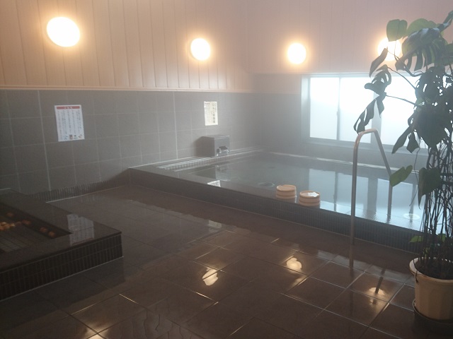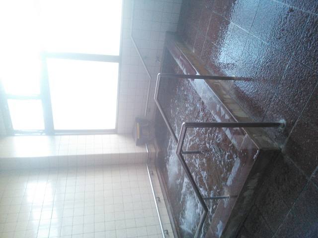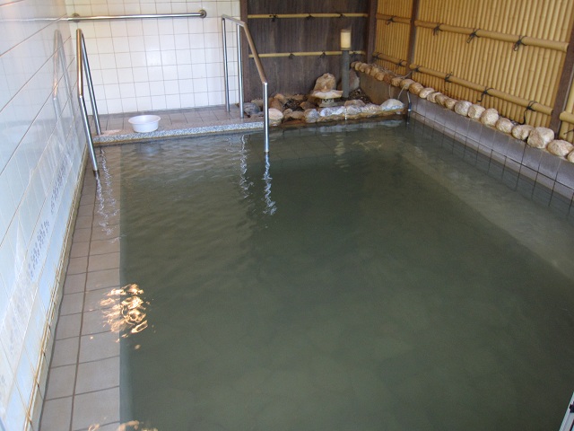 深野温泉「ケアポートよしだ」は高齢者総合福祉施設、健康温泉プールに浴場も併設され、お風呂だけの利用もできます。近くの泉源からローリー輸送して利用しています。受付で料金を支払い、ロッカーナンバーの札を受け取ります。同じナンバーのロッカーを使用しますが、鍵はありません。同じ料金で利用できるのでプールは混んでいますが、浴場は空いています。あまり広くない扇形の石造りの浴槽、お湯は特徴ありません。料金300円。