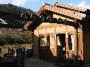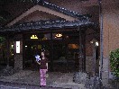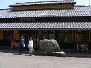 | 「きまち温泉」は来待川沿いの田園風景の中に建つ静かな環境の一軒宿。日帰り入浴は400円です。階段を昇ってまた降りたところに浴場があります。整備された小さな庭を望むように造られています。湯は無色透明でそんなに特徴はありません。相方さんの撮った写真をみると女湯はシンプルですが、男湯は凝っていることが判明してしまいました。 (松江市宍道町上来侍1 Tel.0852-66-1502) |