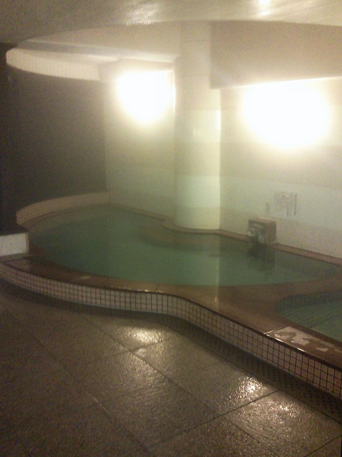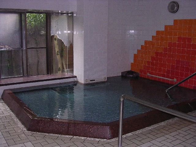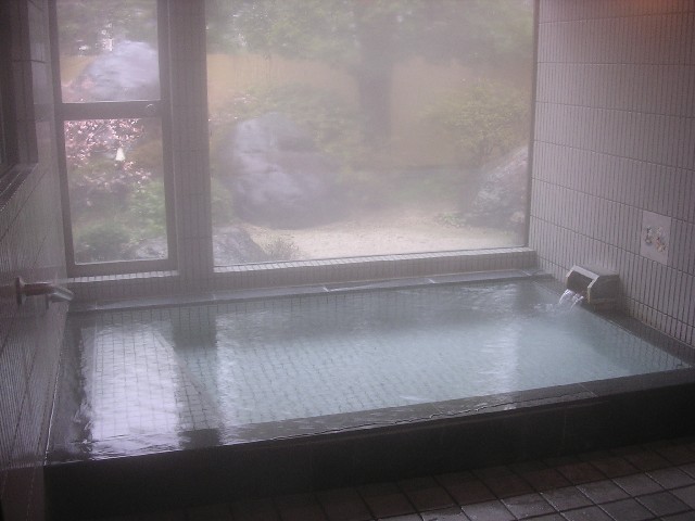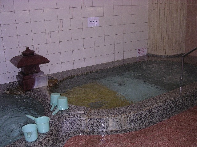 「サウナオアシス」は2006年10月のリニューアルで天倫寺温泉を引きました。料金は女性1050円(男性2100円)です。サウナがメインの施設で、大理石調の浴槽は二つですが、一方は水風呂。温泉利用の浴槽は一つです。湯口が白く変色し、かなり熱いお湯が少しずつ注がれているので、源泉の可能性があります。なめてみると微妙に塩気がある気がしました。多少つるつる感、極僅か色付きかな?という感じで強い個性はありません。入口を入ると両側に下足箱があるのですが、女性は向かって右、男性は左に入れてください。ナンバーはそのままロッカーキーのナンバーになります。タオル2枚、バスタオル、館内着付き。男女別の階段を上がって2階が浴室、3階は休憩室と食堂になっていて、高台にあるので眺めがよいです。(松江市国屋町591 Tel.0852-21-4040) |