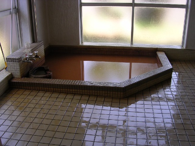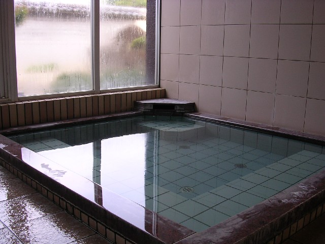 出雲須佐温泉「老人福祉センター潮の井荘」。毎日通っていもいい、料金100円。透明で微塩味の源泉がカランから供給されます。洗い場も浴槽の規模の割りに広いのですが、ちょっと覗いた(オイオイ)男湯に比べると浴槽はなんの変哲も無い無機質な印象でした。(出雲市佐田町須佐749−5 Tel.0853-84-0925) |
