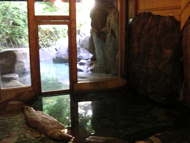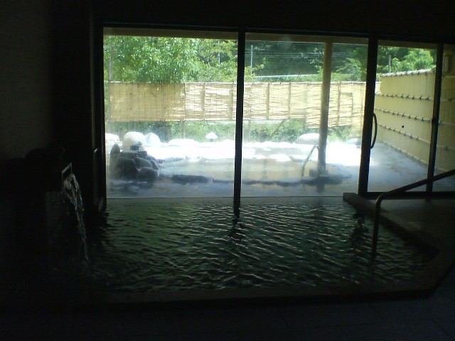 鷺の湯温泉「さぎの湯荘」は2006年7月に改装されてきれいになりました。館内は洒落た雰囲気になっています。浴室は庭を眺めながら一番奥まで進みます。石造り、扇形の内湯と岩造りの露天風呂があります。よく温まる湯。日帰り入浴700円。
