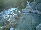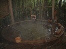 風呂は男女別で交代はありません。また空いていればいつでも入れる家族風呂が一つあります。すべて時間は夜23時までで朝は6時からです。湯温はやや低めの適温といったところでしょうか。露天はさらに低めですが、入っていて寒いということはありません。内湯は岩風呂ですが、やや暗い感じで、内部もコンクリートの部屋にペンキを塗ったようで今一な気がしました。雰囲気があると言えば言えるのですがぼくはあまり好ましい印象を受けませんでした。それに比べると露天はとてもいいですね。男性用は山と林、庭に面していて眺め応えのある景色です。後ろの建物を振り返らず、前だけを見ると野の湯船につかっているような気分になります。自然と一体化したお風呂にはいくつか入りましたが、その中では一番一体感はあるのではないでしょうか。かなりいい印象です。女性用は確認した訳ではありませんが、男性用からは眺められない川や遠くの山も見えるようです。できれば、男女交代にしてほしいところです。後で少しご主人と話したのですが、それによると、お湯は半分循環とのことです。ただし、塩素臭はまったくしません。加熱はしていないという話だったのですが、朝の露天には特に熱いお湯がそそぎこまれていたので、ちょっと?です。したがって、逆に温度管理はしっかりしている印象を受けました。 |