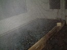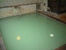 部屋で着替えているところにフロントから電話があり、今日は二組だからお風呂にゆっくり入ってくださいということでした。確か、HPには露天があるとのことだったので、露天がありますよね、と聞いたら、「今日はキャンセルしました」とのことで、その言葉の使い方や、客が少ないから露天にお湯を入れないということに、口あんぐりです。でも、雨もふっていたし、どうせ大したことはないだろうと、あまり怒る気持ちにはなりませんでした。ただ、後で内湯に入りに行った時に見てみても、どこにも露天の表示がないのです。外に離れてあるのかと食事の時に仲居さんに聞いてみると、内湯のそばにあるが、カギをかけているということでした。それにしても表示自体がないということは、使わない時のために表示が取り外せるようになっているということでしょうか。とりあえず、その内湯に入ろうと行ってみると、男湯から女性の声が聞こえるではありませんか。どうも二組しかいないので、一組が一緒に入っているようです。では30分ほどしたら交替しましょう、ということにして、ぼくはまず女湯の方に入りに行きました。小さめのタイル貼りの湯船でしたが、古い宿で小さい湯船だから、循環じゃないんじゃないかとそれだけを期待したのですが、しっかりと吸い込み口がついていました。温度はやや高めでしたが、お湯はきれいで気持ちのいいものでした。今のうちに体を洗ってしまおうと、カランの水を出そうとしたら、「み、水の蛇口からお湯が出てくる!!」ということで、いつまで経っても水になりません。ま、熱湯ではないのでシャワーなどは離して浴びればちょっと熱いものの大丈夫かな、という感じです。脱衣所には平成9年の分析書が張ってあって、PHは10.1とありました。アルカリ度が高い割にはそれほどぬるっとした感じではありませんが、温まるお湯ではあったと思います。交替した男湯は女湯より広めになっています。こちらも吸い込み口がありましたが、少しずつは外に流れ出しているようです。仲居さんは「外にあふれているから」と自慢そうに言ってましたので、いくらかは半循環に近いのかもしれません。男女とも塩素臭はまったくしませんでした。この男湯のお湯は適温で、極楽、極楽状態になりました。ただ、この内風呂は女湯も男湯も外の景色がまったく見えない、閉鎖的な状態です。確か、窓はあったと思うのですが、曇りガラスで、しかもすぐそばに何かがあるのか、暗くなっている感じだったと記憶しています。お風呂の時間は6時半から夜の10半までですが、この日は夜の食事の時に何時ごろに入り終わるか聞かれ、10時頃と答えたのですが、その時間にしっかりお湯を止めに来ました。