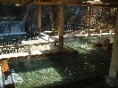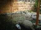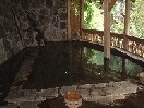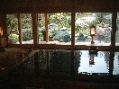 翌日、向かったのが四万温泉。「四万たむら」といえば「森のこだま」と「御夢想の湯」の二つが有名で、時間制で交代だと思っていたんですが、男女両方ともあるんですね。「森のこだま(写真2)」はあまりにも人工的な露天風呂で嫌いな人もいるかもしれませんが、そんな人には「竜宮(写真3)」という川原のワイルドな露天風呂もあります。「竜宮」は一応混浴なんですが、女性用の脱衣所もないし、残念ながら、女の人はほとんど入れません。(ただし、勇敢なおばさんたちが、この日は入ってました。)「御夢想の湯」はやはり、何か精神的に落ち着きます。それから、「たむら」には湯治向けに「花涌館」という建物があって、その中にも「翠の湯(写真4)」というお風呂があるんです。このお風呂もけっこうシブイんですよ。「森のこだま」は温度が熱いです。全体が屋根に覆われていますので、上への開放感はありませんが、人工の滝あたりに奥行きがあるので、ぼくは好きです。「竜宮」は屋根がありませんので上への開放感はあります。でも、周りは石ばっかりで急流などはありませんから、景色は今一です。食事ですが、食事処であつあつが食べられますし、味もなかなかです。百合根の天麩羅や、蓮根饅頭の蟹肉銀餡なんかはとてもおいしかったですね。朝は、レストランのバイキングでまあ合格点というところです。部屋ですが、僕の泊まった水涌館は広くてレイアウトも凝っていてなかなかいいです。坪庭が配置してあり、そのせいでトイレにも、部屋の風呂にも窓があります。