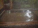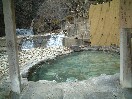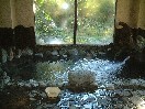 混浴の内湯である岩風呂はなかなか情緒があります。浴槽が二つ並んでいて、透明感にあふれたお湯が流し切りになっていて、湯口にコップが置いてあり飲泉ができます。お湯はくせがなくかなりおいしいものですが、おいしさよりも、四万の湯は胃腸に効くということで有名なようで、露天で一緒になったおじいさんがとてもいいと言っていました。岩風呂は自然の岩の上に木を組み小屋掛けした感じ(もちろん、本当は人工的に岩を組んだもの)で、ちょっと、この前の満山荘の内湯を思わせます。なかなか雰囲気を感じさせる内湯です。シャンプーは置いておりますが、カランは一切なく、湯舟のお湯を汲んで流すことになります。ただ、あまりたくさんの人で混み合うことはないので、お湯はきれいで、何の問題もありません。岩風呂の窓からは外の木々と「かじかの湯」が見えます。湯船が狭いうえにお湯は透明感あふれるもので、混浴とはいえ、女性にとっては「かじかの湯」も「月見の湯」も「岩風呂」もかなり男性と一緒に入るにはキツイお風呂だと感じました。ぼくは露天に平気で2時間くらい入っていますので、女性の邪魔をしているのではないかと気になったのですが、この日は女性一人ということで、いくらか安心しました。 |