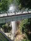 今回はインターネットの10周年特別企画という格安プランで行きましたが、通常も平日12000円というかなり安い料金設定です。仙心亭は全部で部屋数が20室以下だったと思います。泊まったのはバス・トイレ付きの部屋で、10畳と畳の広縁が付いた仙心亭ではごく一般的な部屋です。10周年ということですが、部屋はまだ小奇麗で10年も経ったという印象はなく、申し分ありません。入った部屋は川に向かって左端の方の部屋で、この部屋の特徴は何といっても川俣名物の間欠泉が部屋の中から眺められるということでしょう。ただ、間欠泉が見られるということは噴泉橋から、こちらも見られてしまうということでもあります。この間欠泉は6年前は湯の出が悪かったのですが、今回は豪快に吹き出していました。50分に一回、15秒程度で、結構、見るのは難しいのですが、今回は二泊したせいもあり、部屋の中から、大浴場から、噴泉橋からと何回も見ることができました。また、奥鬼怒の清流もかなり見下ろす感じですが部屋の中から眺めることができます。 |