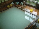 | 元禄の湯は大正ロマン的なアーチ型の窓がついた雰囲気のあるタイル張りの浴場です。 ドアの外に履物を置いてドアを開け、中に入ると、いきなりタイルの床ですが、床下に温泉が流れているのか、床暖房になっています。ドアの左右に脱衣場所があり、浴槽のある部分より一段高くなっていて、浴場全体を見渡せます。一人か二人入れる程度の浴槽が四つとそれよりもやや広い浴槽が一つ整然と並んでいる、という変わった形式の屋根の高い浴場で、洗い場はありません。お湯はやや熱めという感じで、特につるすべなどの特徴は感じられません。このお湯は積善館の前の川の底から湧いているものだそうです。右の壁に蒸湯用の小さな入り口が二つあります。中は暗くて狭く、デッキチェアの形に作られたタイルの上に斜めに寝そべる形になります。説明書きにはここにお湯を何杯か掛け入れてから入るように書かれています。タイルはけっこう熱くて、狭苦しく、入り口を閉めるので薄暗く、閉所恐怖症の人は絶対にダメでしょう。女房の話によると、女湯ではみな敬遠して入らなかったとのことで、ぼくはもう慣れているので元禄の湯に入るたびにこの蒸湯にも入ったのですが、割とすぐに出てきてしまい、記念入湯に近いものがありました。蒸湯に限らず、この元禄の湯はなぜかあまり長居をする気分にならないのです。タイル張りで、明るいからでしょうか。僕以外に入っていた人も、長湯の人は一人もいませんでした。あるいは、空間が広すぎるせいだからでしょうか。 5階にある露天付きの大浴場「杜の湯」は、大きく取られたガラス窓に面して10人程度の石の湯船が作られた、明るくて割と好きなお風呂だったのですが、今回行ってみると、ところどころにさびのようなものが浮き出て、やはり少し古くなったような感じです。このさびは外の露天側にもありました。 露天は大浴場から出る形です。屋根のある部分とない部分との二つの浴槽に分かれています。それぞれ8人ぐらいは入れる大きな岩造りの湯船で、様々なサイズの石が湯船の中に置かれていて、自分の好きな高さで半身浴ができます。ぼくにとっては形としては理想的な露天だったのですが、今回はちょっとばかり湯温が低すぎました。風邪をひくほどではないのですが、ずっと湯船に浸かりっぱなしという状態でした。湯口近くには、熱湯が出るので近づかないようにという注意書きがあるのですが、今回は湯口にも十分近寄れました。初回はむしろ熱めの露天という印象があったのですが・・ 露天の周囲は柵で囲まれていますが、柵までの距離があることとその周りも木々であるので、開放感があり、十分に寛げる露天であるだけにちょっと湯温が温すぎたのが残念です。女房は温すぎたのでほとんど露天には行かなかったそうです。 無色透明で、5階の杜の湯も元禄の湯同様、下の川から湧く温泉を引いているそうです。大浴場とは別に佳松亭の玄関前に飲泉所があり、飲める温泉です。ほんの少しだけ塩味がある気がします。湯の花はありません。 また、以前は湯上がりの冷水はなかったのですが、今回は杜の湯を出たところに冷水機が用意されていました。ここは進歩ですね。 |
