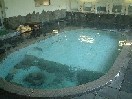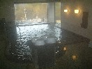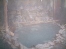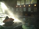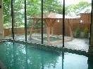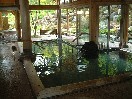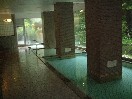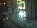 お風呂は最近新しくしたようで、瀧波と言えば、大きな浴槽を真ん中で男女に仕切った内湯というイメージがあったのですが、残念ながらそのお風呂はどこにもありませんでした。ここは夜の8時に男女を入れ替える、交代制です。24時間入浴できます。昼間の男性用のお風呂は寝湯を初め、いくつかの浴槽がある広々としたものでした。こちらには内湯の外に大きな岩をくりぬいたという露天風呂があります。真ん中でし切られていますが、全部で8人くらいはいれるでしょうか。露天風呂は周りをすっかり建物で囲まれていますが、空間にゆとりがあるので、そんなに窮屈な感じは受けません。ゆっくりとお湯につかれます。浴槽の上に屋根がついていますが、ガラスの天窓になっているので、全体に明るい印象を受けます。お湯は少ししょっぱい感じです。浴槽からお湯が流れ出していますが、例によっ流れ込むお湯と流れ出すお湯のバランスが?です。でも、塩素臭などはしません。 |